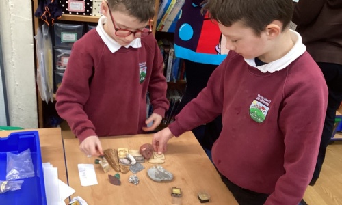 In Geography the Juniors sorted rocks into groups depending on the shape, colour and size!